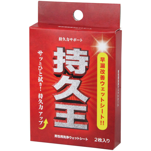 早漏改善ウェットシート「持久王 2枚入りウェットシート」。