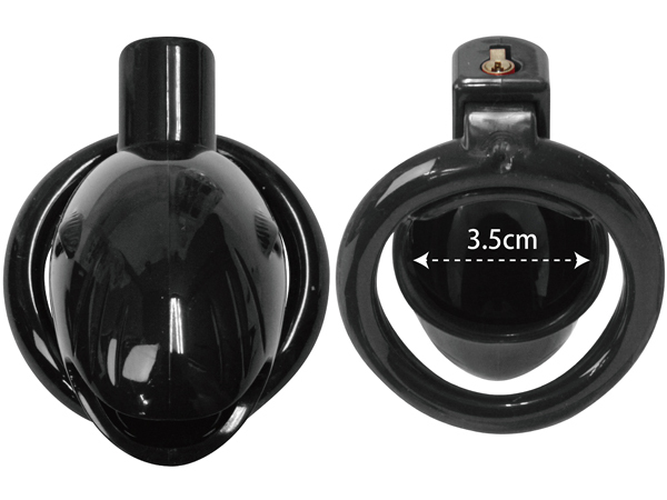 全長7cm、幅3.5cmのケージと3サイズの固定リング(内径4.1cm、4.6cm、5.1cm)で勃起を抑制!鍵を上部に取り付けたことで目立ちにくく邪魔になりにくい♪先端はオープン仕様で装着したままの排泄も可能。