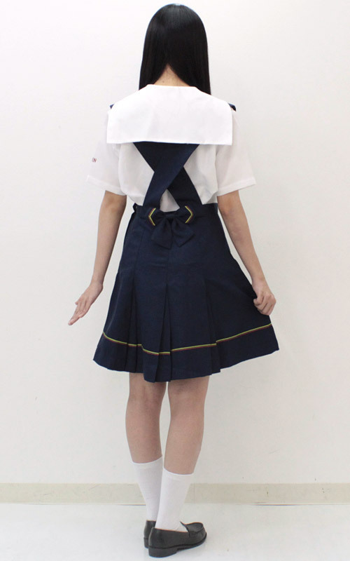 セーラーブラウスにジャンパースカートの組み合わせが可愛い!袖にしっかり刺繍まで入った、本格的な旧夏服コスチューム。