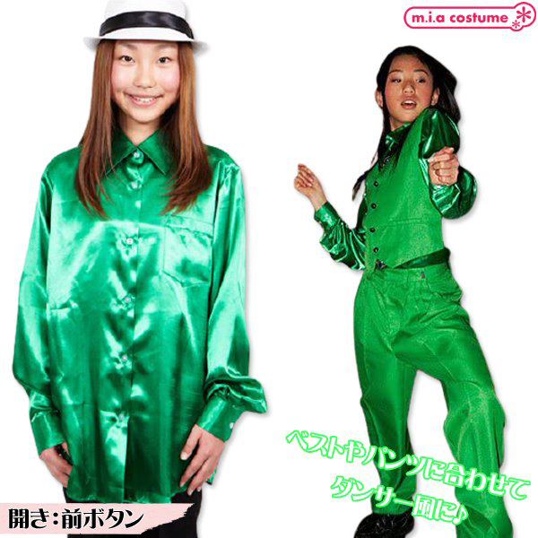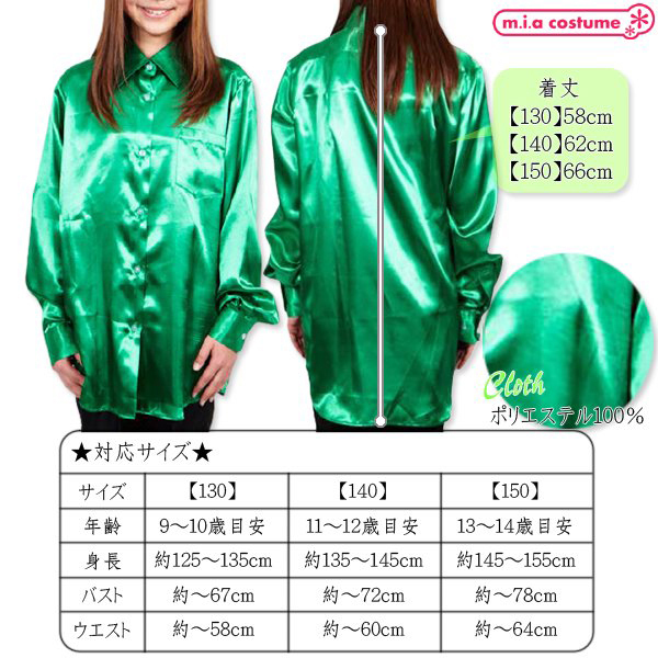 HOME > コスプレ衣装 > 小道具(ニーソックス・猫耳) > サテンシャツ (グリーン 130サイズ)