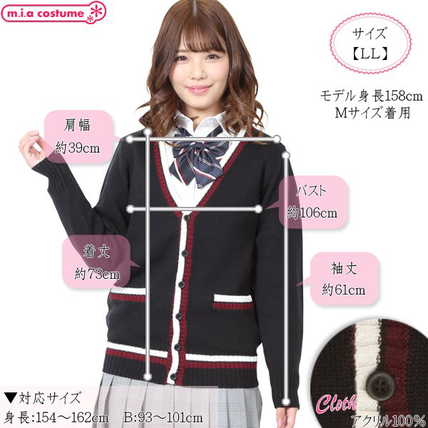 HOME > コスプレ衣装 > 小道具(ニーソックス・猫耳) > カーディガン ライン ブラック LL
