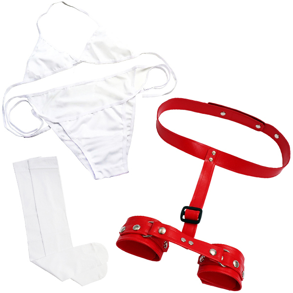 ■仕様:パッケージ:30.0×19.8×5.0cm 本体:フリーサイズ セット内容:枷、ブラ、ショーツ、ニーハイ 重量:189g